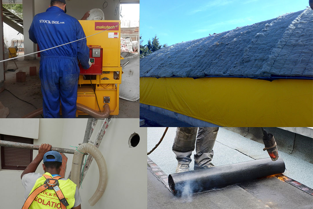 Isolation Thermique des doubles cloisons, des planchers, des combles perdus ou aménagés et faux plafonds par injection mécanique de la Laine de Roche minérale naturelle sous formes de flocons en vrac.